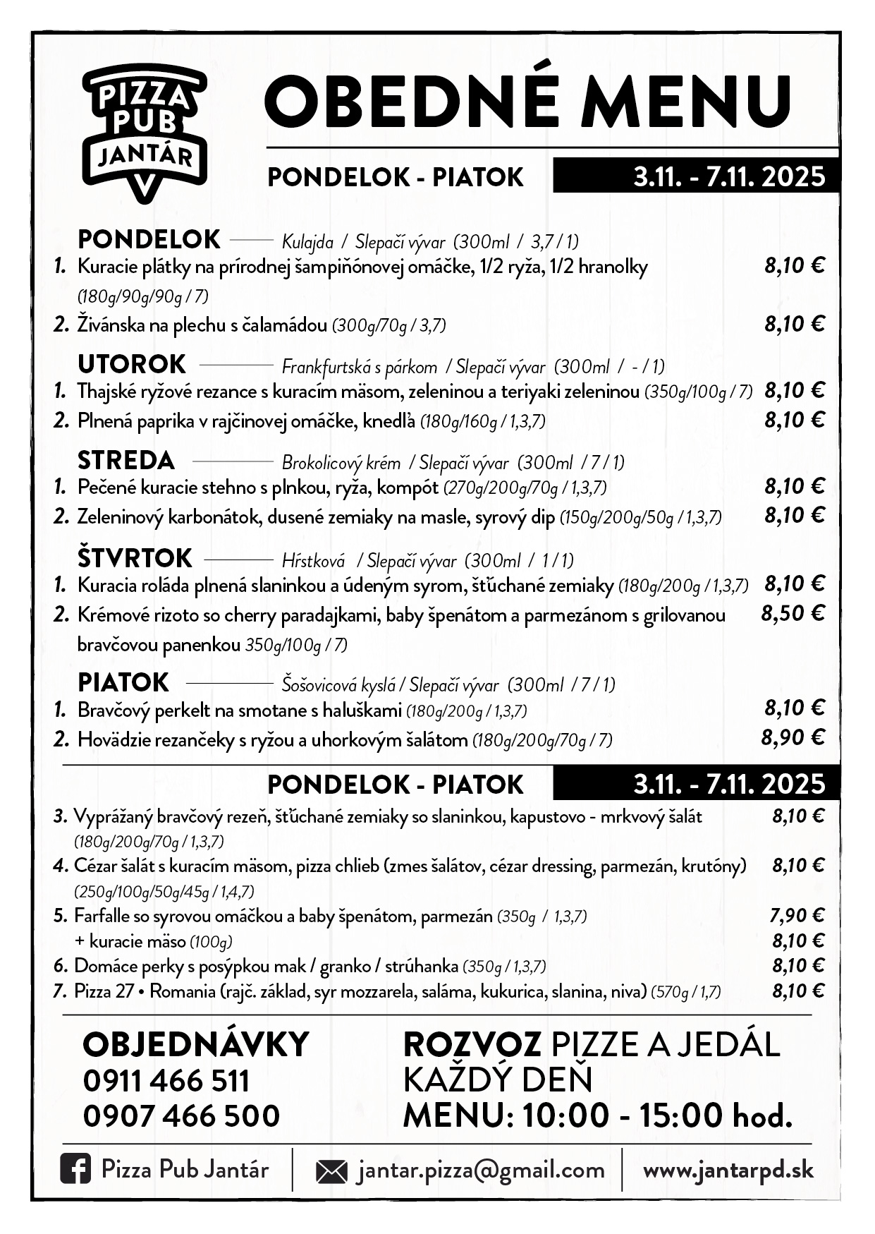 OBEDOVÉ MENU Piatok 07.11.2025 (10:00-15:00)