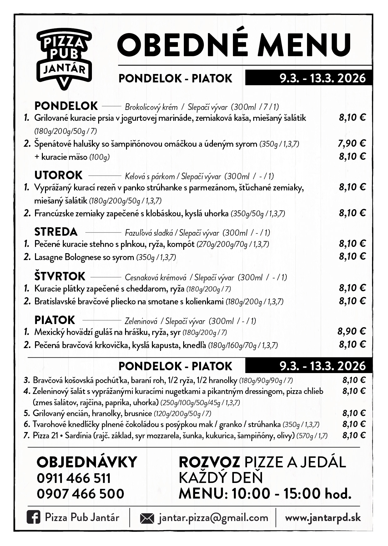 Jedálny lístokOBEDOVÉ MENU 09.03.2026 - 13.03.2026